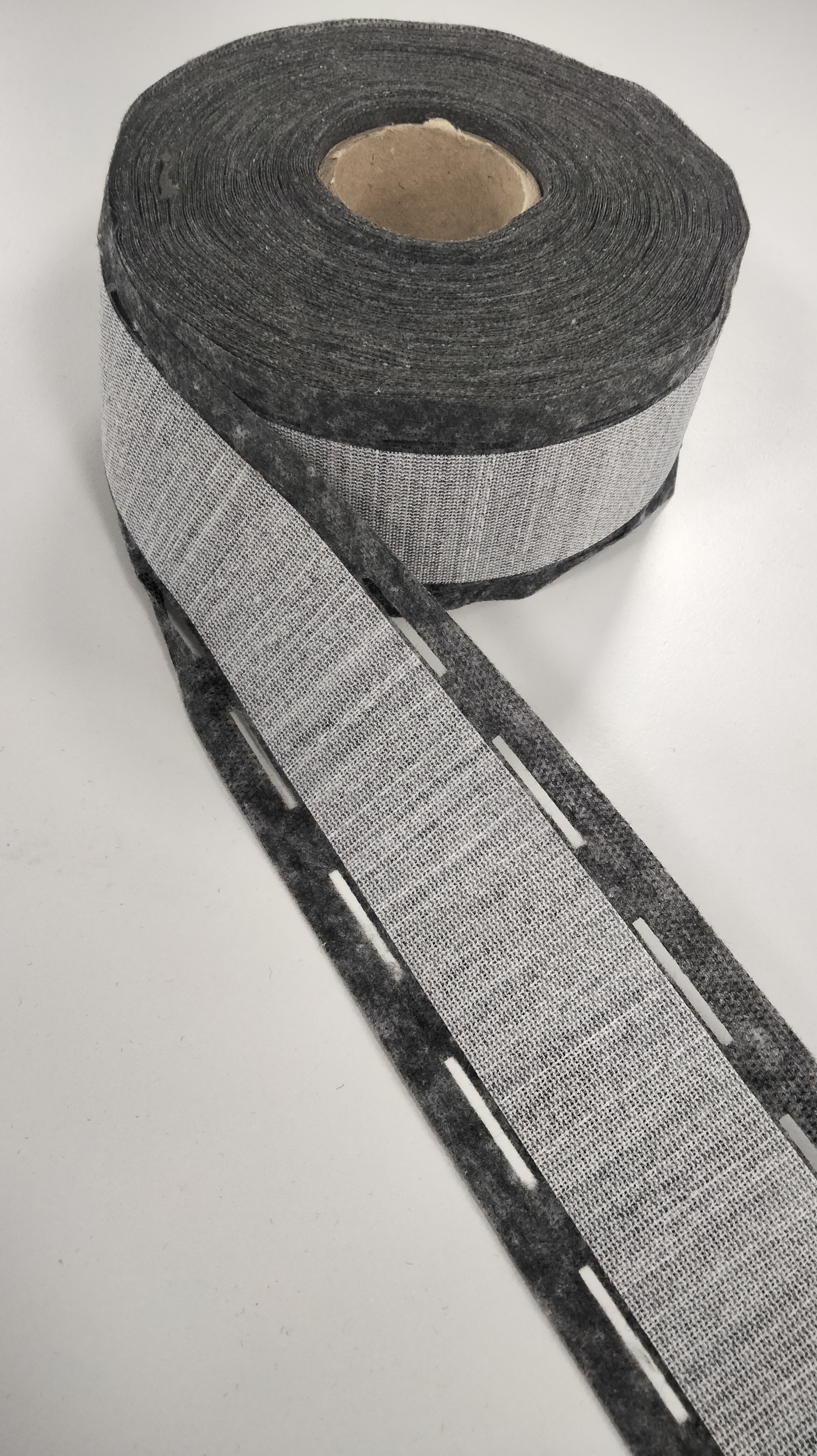 Perforated bands and complex bands are specifically designed for interlining narrow and long components such as skirt and trouser waistbands, as well as bag handles. This fusible reinforcement, available in a perforated version, simplifies production by eliminating the need to mark fold lines. The perforations also serve as sewing guides, ensuring straight and consistent stitching. The result is time savings, a clean finish, and fine, precise edges for a professional and durable outcome.