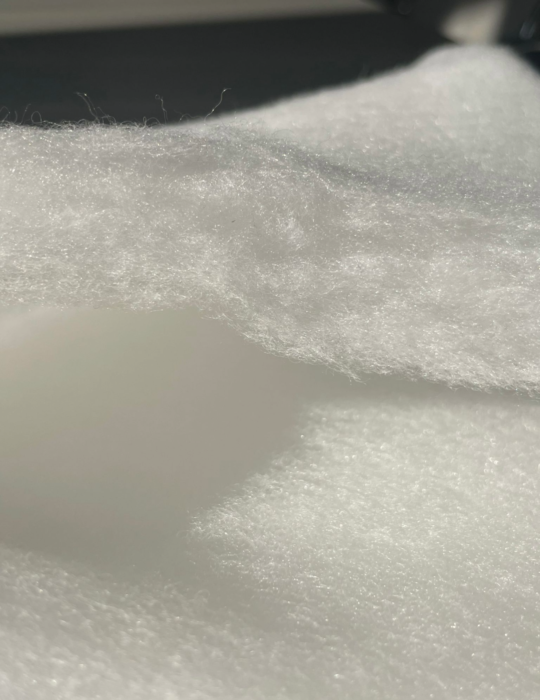 OrderPolyester or wool wadding for thin loft, high thermal retention and a soft hand.